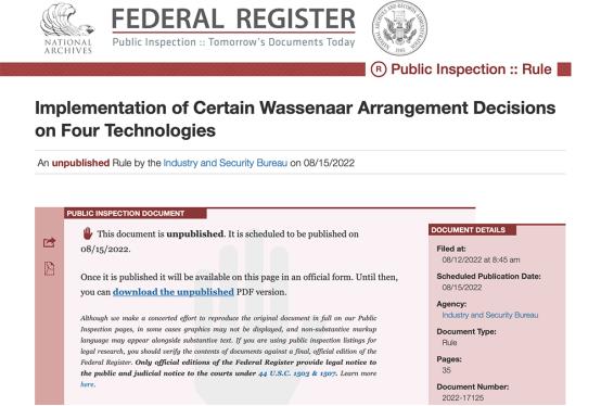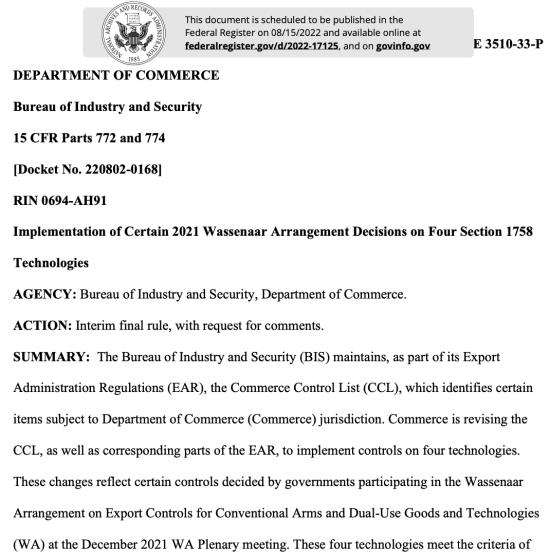 ▲BIS新增出口管制文件截图